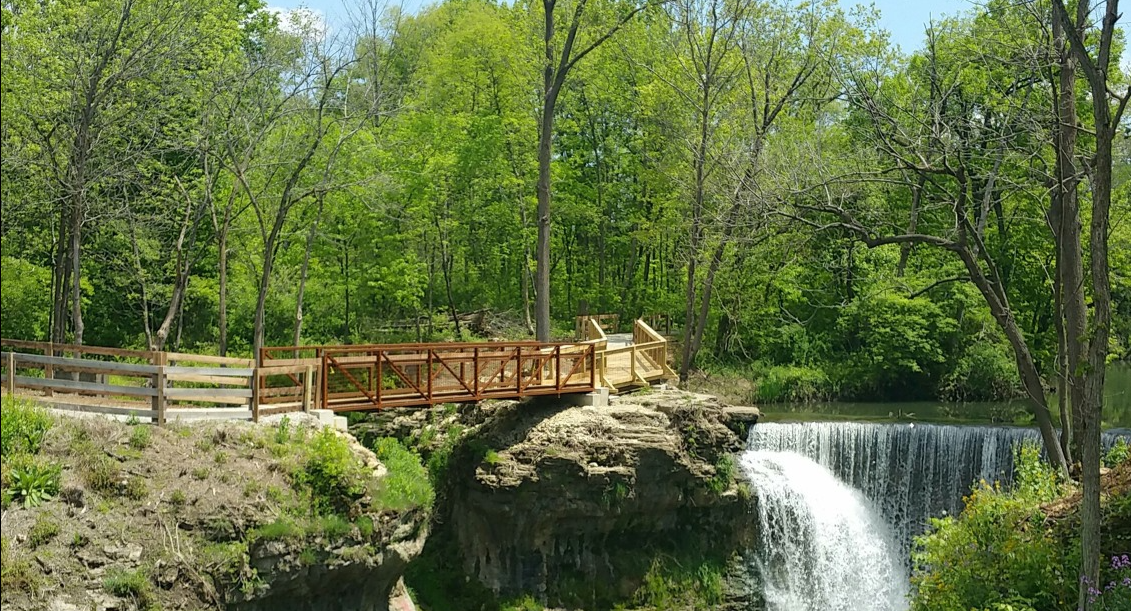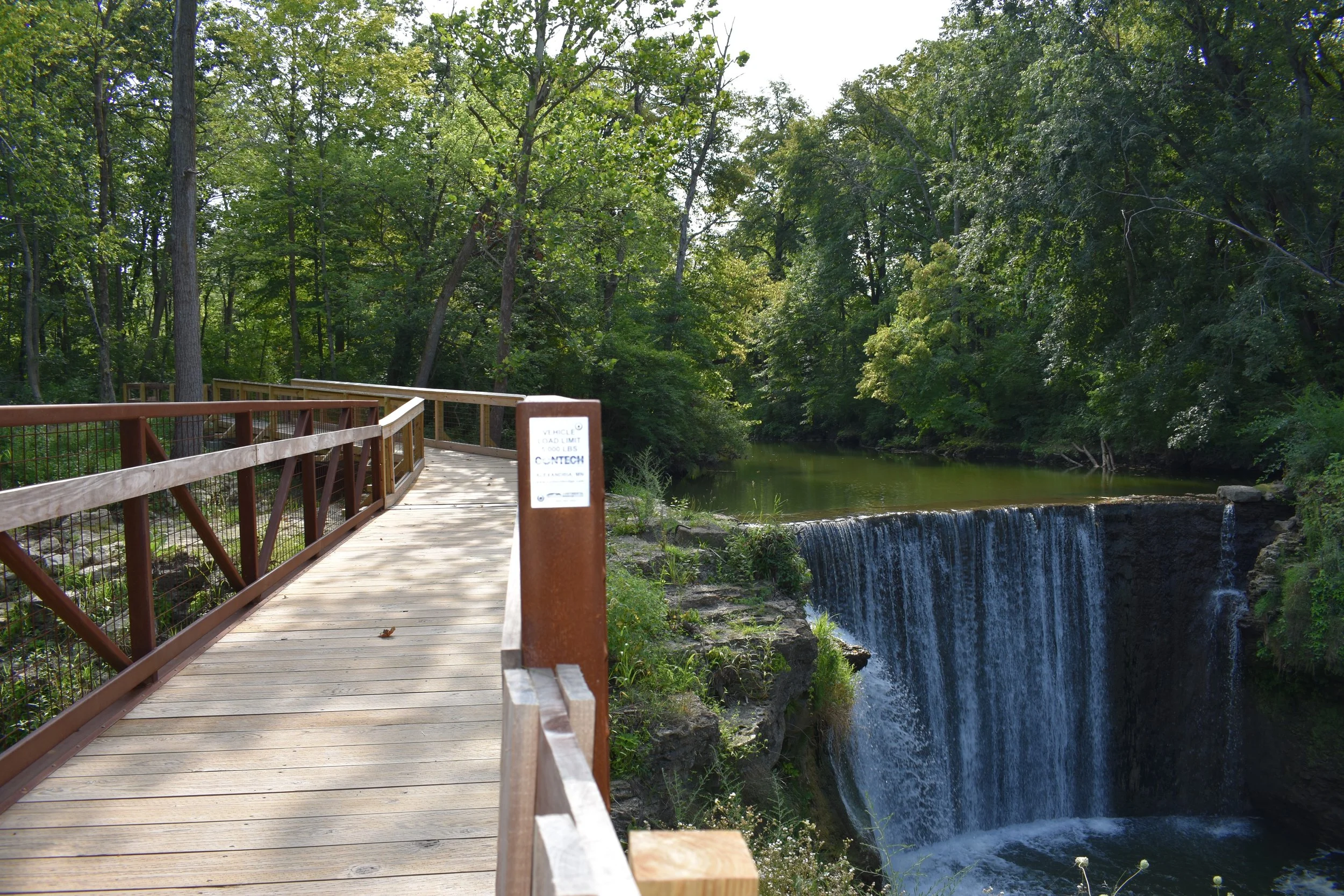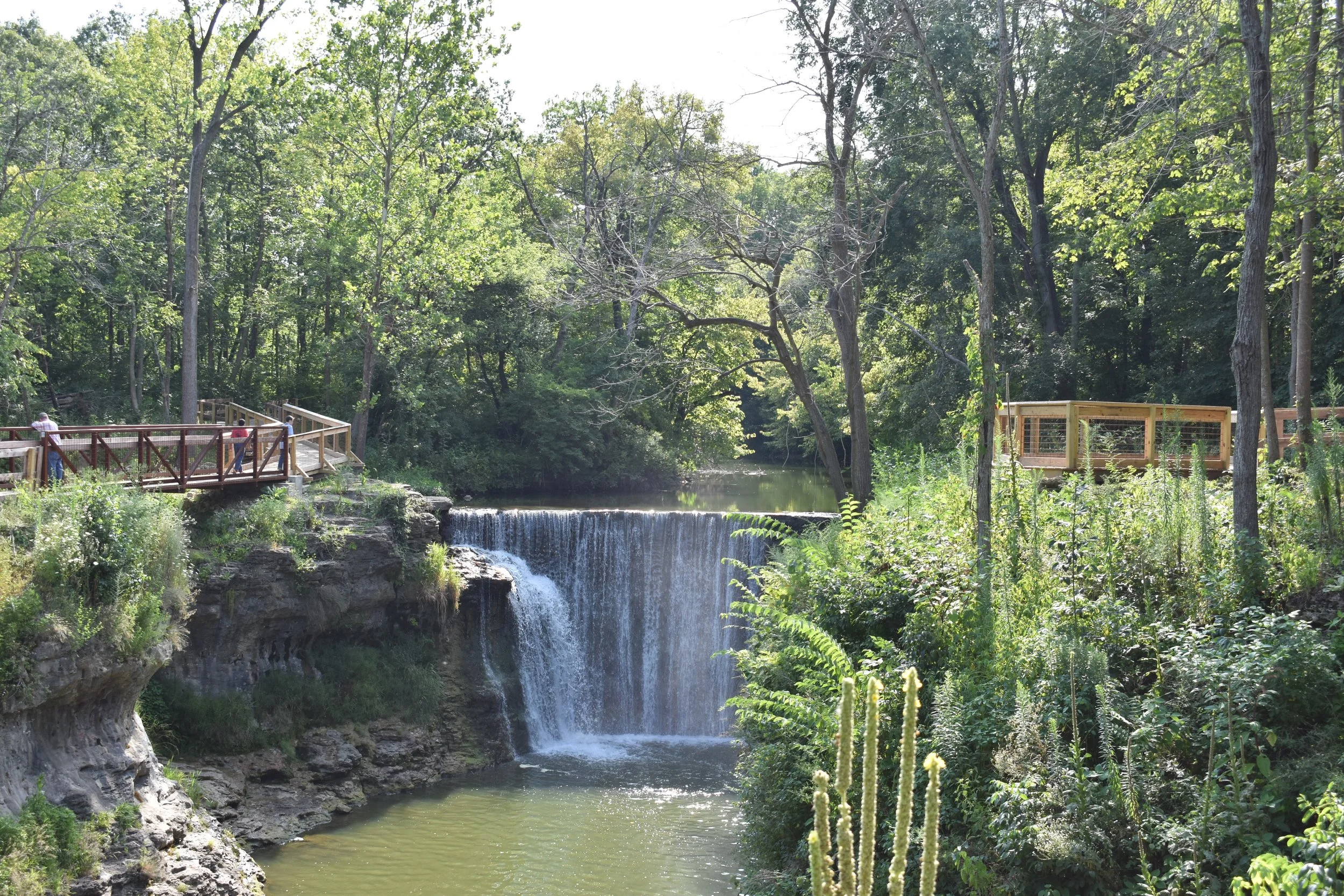We worked with park officials to develop a site map, permitting for the vault restroom, and designed the new bridge and overlook between Peterson Park and Williamson Mound to connect more than eight miles of trails throughout the Reserve. The overlook at Cedar Cliff Falls provides visitors a better experience of the falls’ power.