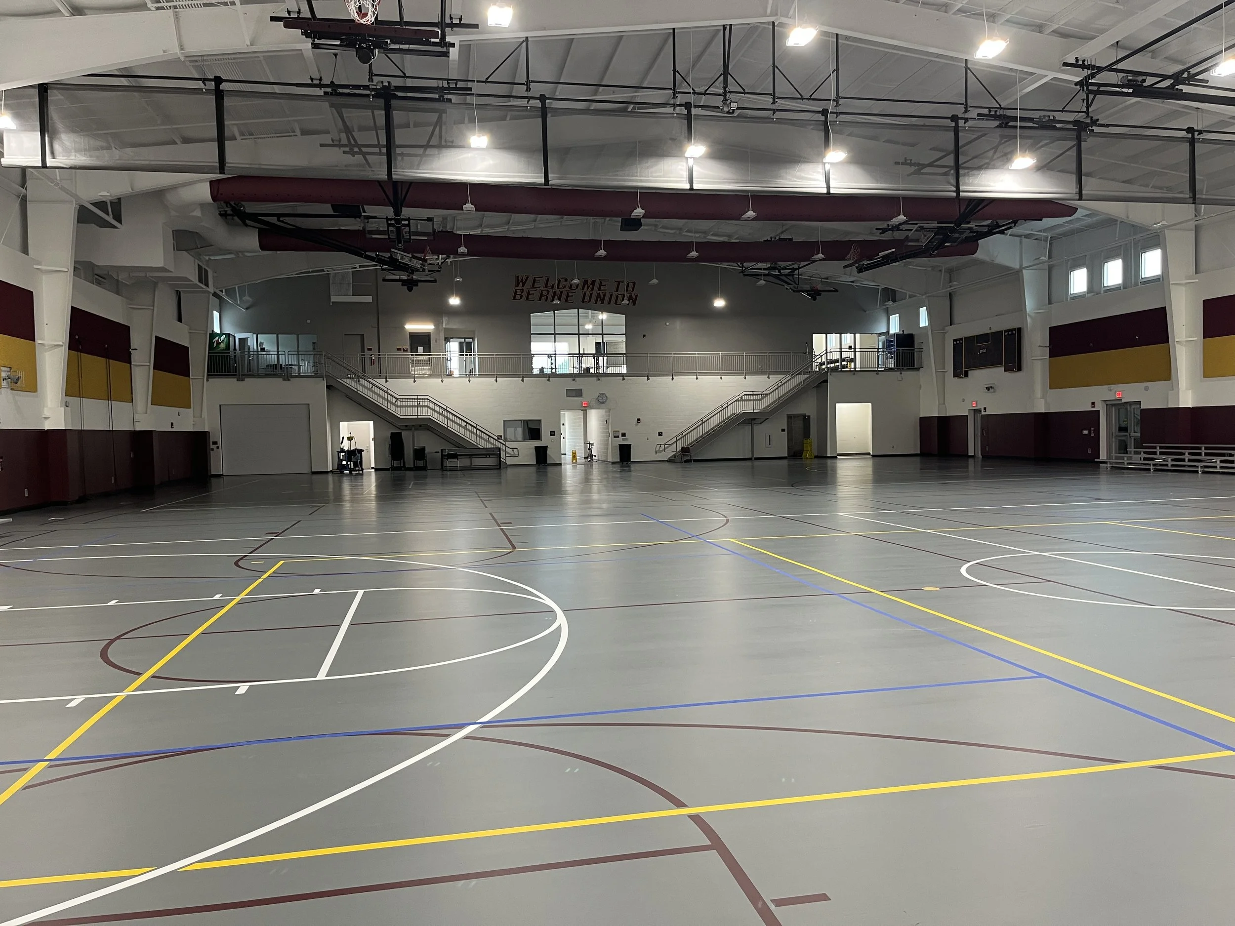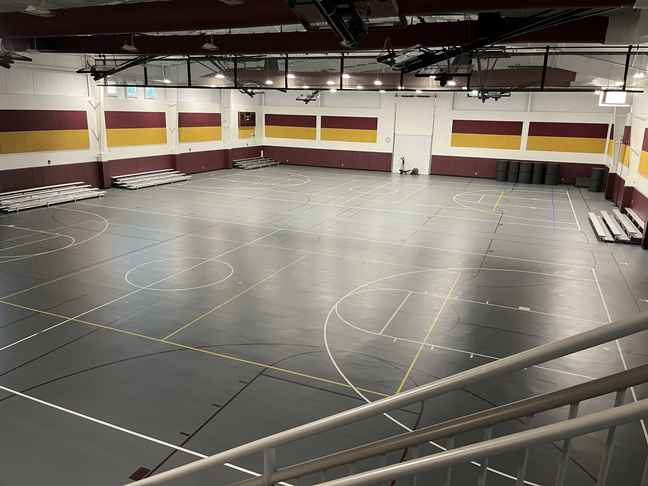 (2) Full-size basketball courts with retractable netting.